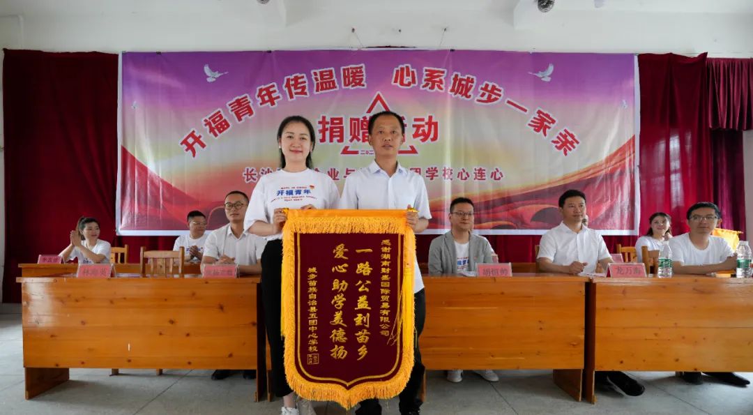 6月10日,跟随长沙金霞保税物流中心、开福区农业农村局、开福区教育局、共青团开福区委员会、开福区青年志愿者协会的“开福青年传温暖 心系城步一家亲”爱心捐赠团队,湖南财盛国际贸易有限公司再次走访了邵阳城步苗族自治县的第二所受捐学校-五团镇中心学校。